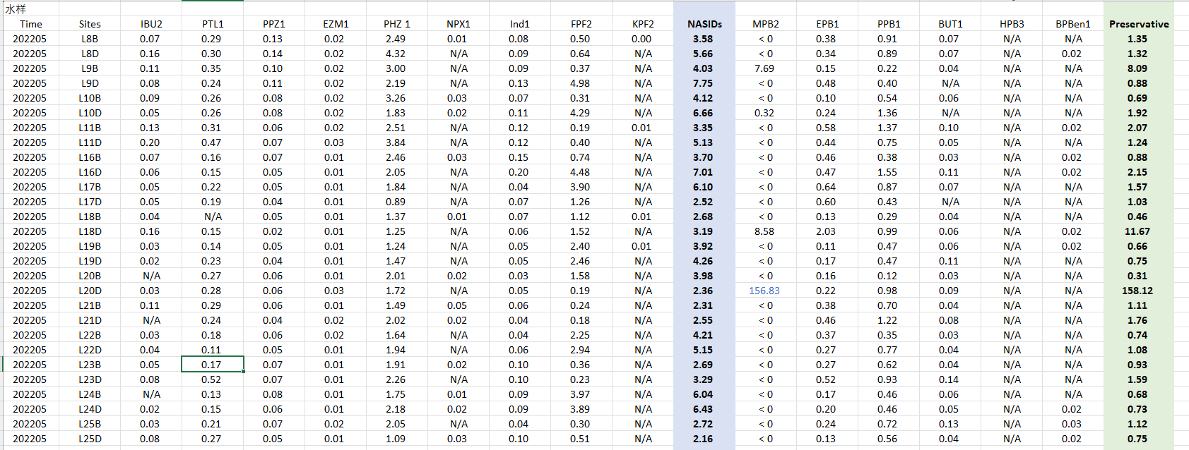 数据集名称:2022年黄河口航次水体中典型医药与个人护理用品浓度数据
