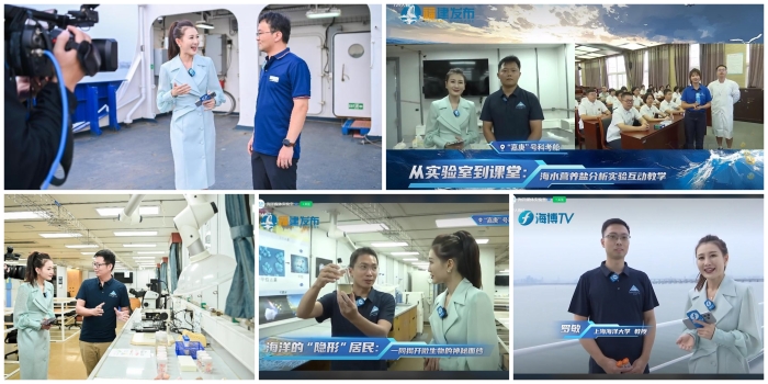 厦门大学近海海洋环境科学国家重点实验室副主任曹知勉教授、南京信息工程大学施文卿教授、上海海洋大学罗敏教授、南方科技大学曾芝瑞副教授、厦门大学王智副教授作为科学家代表在直播中分别从海洋科学发展、海洋环境营养盐、底栖生物和微生物领域的前沿科研成果和先进科学技术、自身科考故事、科学家精神等多个层面进行展示和分享,展现海洋强国背景下海洋人的使命与担当。来自厦门外国语学校的物理老师黄睿贤担任科考船探秘员,带着镜头前的观众深度参观“嘉庚”号驾驶室、实验区和生活区,与线上观众云游科考船,一睹其神秘风采。线上分会场厦门外国语学校的同学们动手操作营养盐检测试剂盒,用数据给出日常用水的水质标准,更直观领悟到精密科学仪器在科学发展进程中不可或缺的地位。