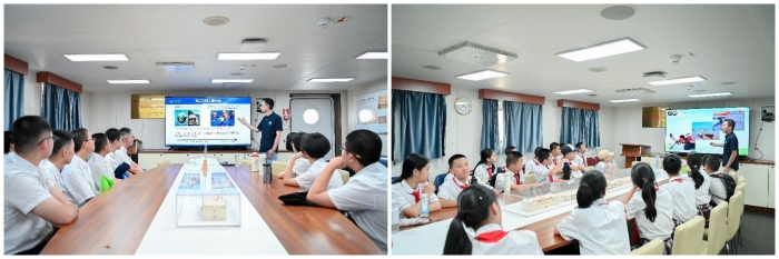 在“嘉庚”号上,南方科技大学曾芝瑞副教授和上海海洋大学罗敏教授分别带来了主题为“生物能源趣谈”和“深渊秘境”的讲座,同学们与科学家积极互动,感受海洋科学的奇妙。