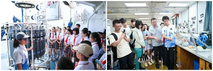 来自厦门外国语学校、厦门市龙湫亭实验学校、集美区小学学生团队和厦大校友团队近300名参观者在今天踏上“嘉庚”号,参观这艘厦门大学拥有完全知识产权的全球级、无限航区的3000吨级科考船,领悟代代相传、前赴后继的中国海洋文化,了解海洋科考的挑战,传承嘉庚精神,感受驶向深蓝的深层意义。