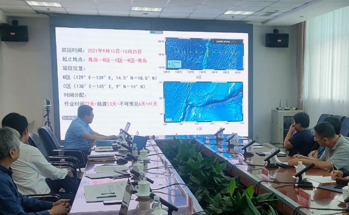 航次首席科学家由中国海洋大学刘怀山教授担任。首席助理邢磊副教授汇报了航次项目实施方案,航期预计84天,分2个航段完成,调查内容涉及水文、地质、地球物理观测及取样等。搭载本航次的11个来自西太计划的重点支持项目共同就航线设计、船时分配及相关事宜展开了热烈讨论并达成共识。