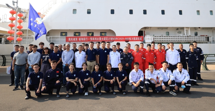 出航仪式上,航次项目负责人、中国海洋大学船舶中心主任王毅梳理了出航前科考仪器设备、登船人员及疫情防控相关筹备工作,希望大家时刻注重船舶和人员安全的教育和管理,严格遵守当前疫情防控要求开展各项工作。航次首席科学家、中国海洋大学刘怀山教授指出,NORC2021-582航次船时紧张、任务繁重,希望各方本着“有限目标、协同共享”的原则,共同努力完成航次任务。