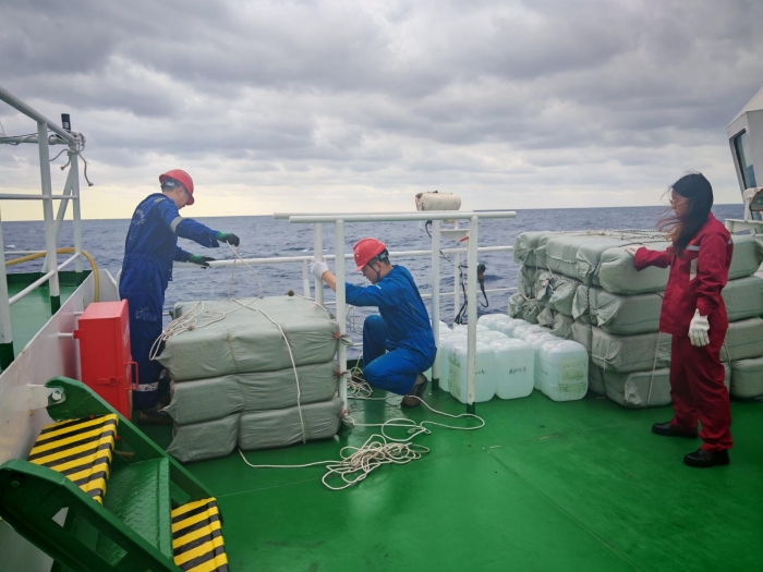 临时党支部立足科考支撑功能定位,深入了解科学家需求,利用专业能力解决科考作业迫切问题。党支部结合调查作业阶段性节点,召开航次阶段总结会,收集生活和作业需求10余项,负责部门现场给出解决方案并执行。针对中国科学院地球环境研究所张静老师大体积采水及样品存放问题,党支部组织船员对采水设备进行改造,引采水管至艇甲板样品存放区,即方便样品采集也大量减少样品搬运工作,并对其采集样品规划存放和加固绑扎,保障采水作业规范有序,样品安全稳固。厦门大学吴子逸博士采集走航水时,设备海水管系破裂,海水喷溅至设备表面导致其短路损坏,党员刘培中利用晚上休息期间,争分夺秒对设备进行拆解检查,最终修复完成,可正常使用。党员王传波利用船上现有物资对海水管系进行紧急修复,极大减小了实验中断时间,确保科学调查连续性和时效性。