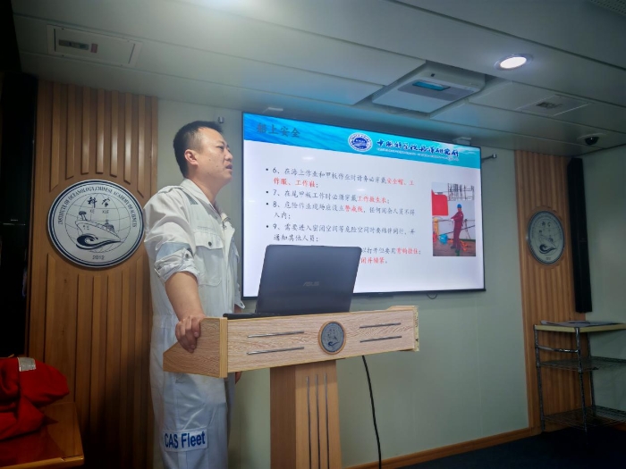 安全培训方面,开航后各部门负责人结合《科学家手册》和航次特点从消防救生、用电安全、后甲板作业安全、实验室安全、危化品管理等多方面进行细致培训。安全保障方面,面对8级风4米浪高的恶劣海况,安全小组提前规划、组织人员对后甲板设备、实验室器材进行绑扎加固,加强巡视检查频次,在船舶摇晃30°的情况下所有科考设备安全牢固,未发生移位损坏。安全监督方面,发挥“每一名党员都是安全监督员”号召,及时发现并制止不安全行为,对作业中队员安全意识淡薄,劳保用品穿戴不足等问题进行了专门督导。